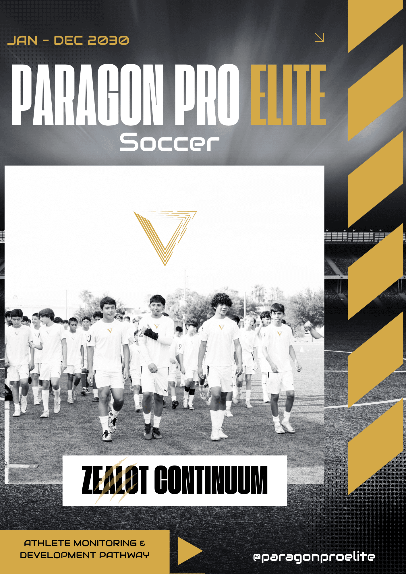 The PRO Zealot Program is a high-performance development track led by certified Paragon Pro Elite professionals. Athletes receive a multi-evaluator assessment across all core soccer components—technical, tactical, physical, psychological, and team dynamics—with actionable feedback tied directly to their PPE evaluation profile.
